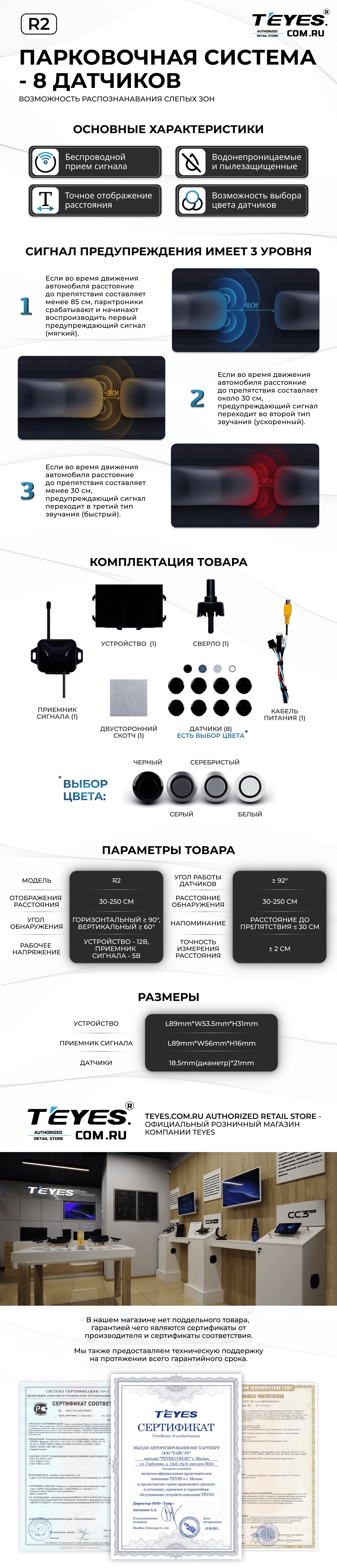 Передние и задние парктроники Teyes R2 для CC4 Pro / CC4 / CC4L / CC3 2K / CC3 / CC3L / CC2 Plus / SPRO Plus / TPRO2 / LUX ONE (Серебристые) 8-датчиков - купить всего за 19 900 руб. в интернет-магазине в Краснодаре Teyes.com.ru. ✓ Самый лучший выбор мультимедиа ✓ Лучшая замена штатному ГУ ✓ Тел. +7 (800) 775-31-74