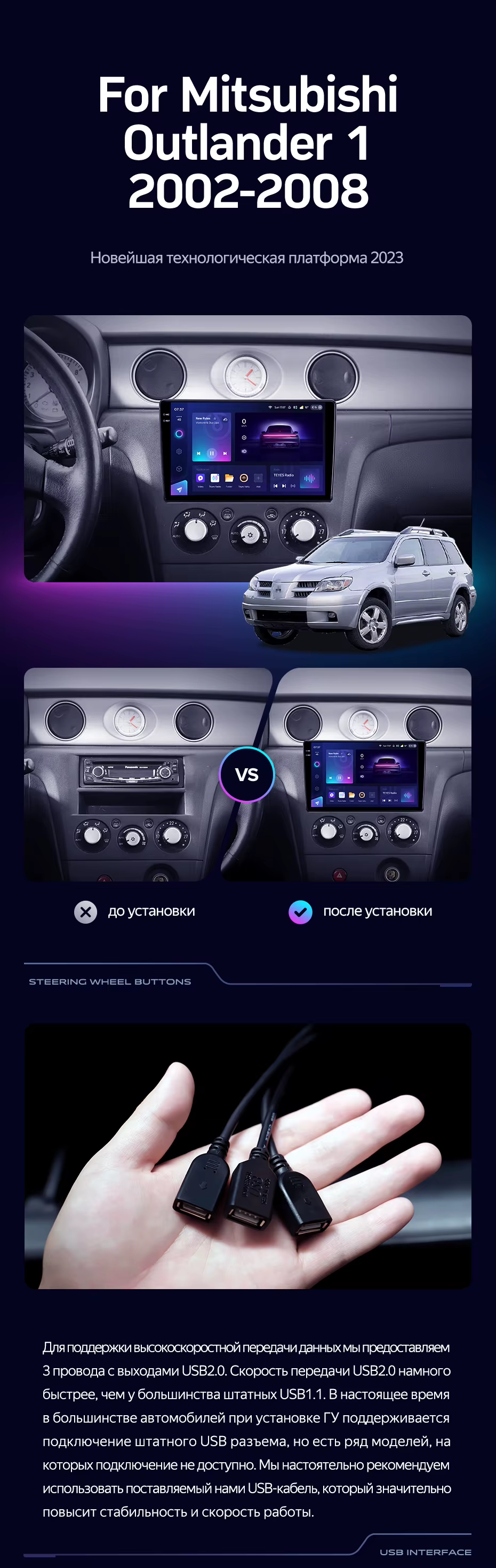 Штатная магнитола Teyes CC3 2K 4/64 Mitsubishi Outlander 1 (2002-2008) F2 - купить всего за 47 400 руб. в интернет-магазине в Краснодаре Teyes.com.ru. ✓ Самый лучший выбор мультимедиа ✓ Лучшая замена штатному ГУ ✓ Тел. +7 (800) 775-31-74