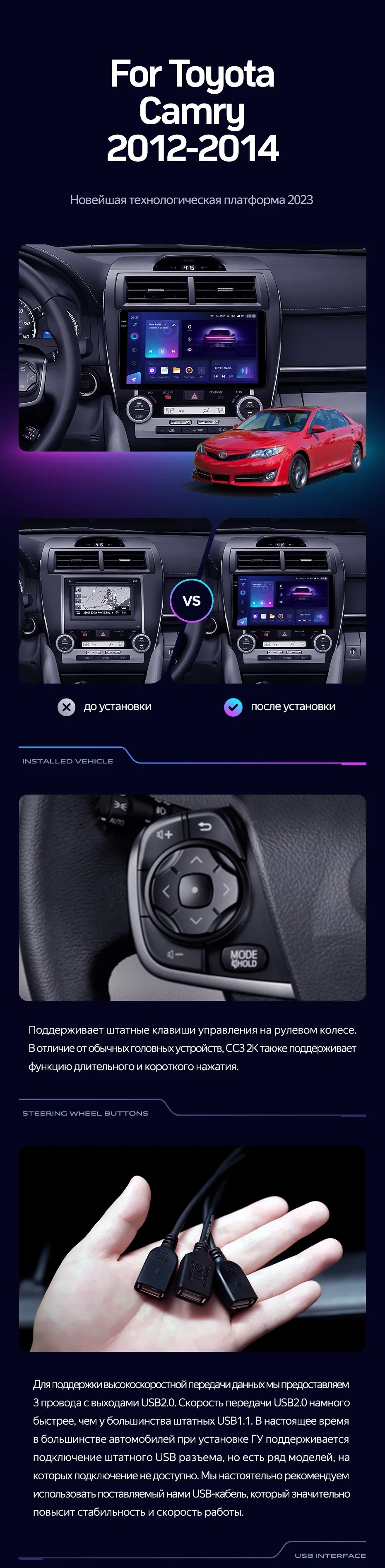 Штатная магнитола Teyes CC3 4/32 Toyota Camry 7 XV 50 55 (2012-2014) Америка - купить всего за 41 650 руб. в интернет-магазине в Краснодаре Teyes.com.ru. ✓ Самый лучший выбор мультимедиа ✓ Лучшая замена штатному ГУ ✓ Тел. +7 (800) 775-31-74