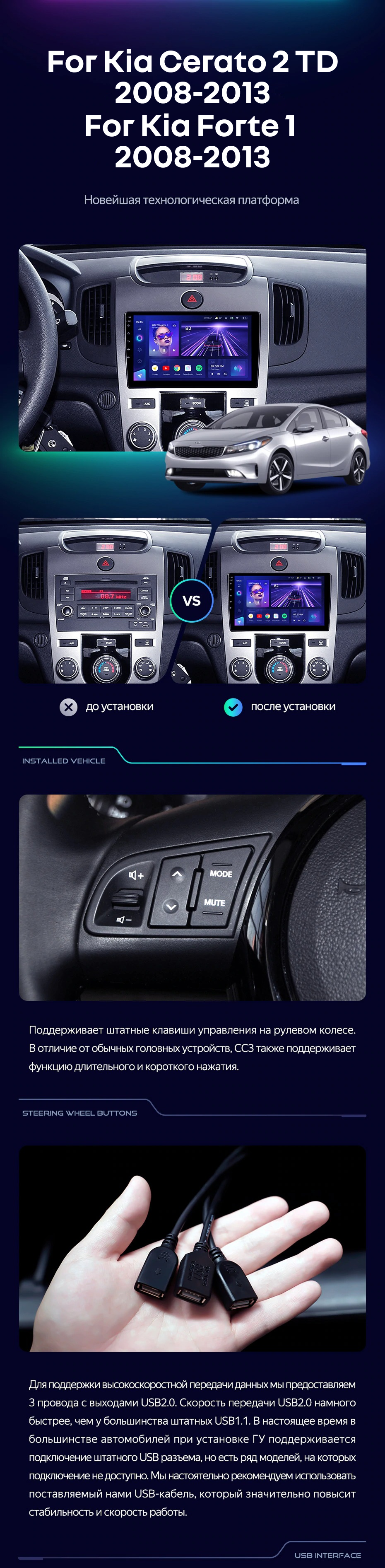 Штатная магнитола Teyes CC3L 4/32 Kia Forte 1 (2008-2013) F2 - купить всего за 28 000 руб. в интернет-магазине в Краснодаре Teyes.com.ru. ✓ Самый лучший выбор мультимедиа ✓ Лучшая замена штатному ГУ ✓ Тел. +7 (800) 775-31-74