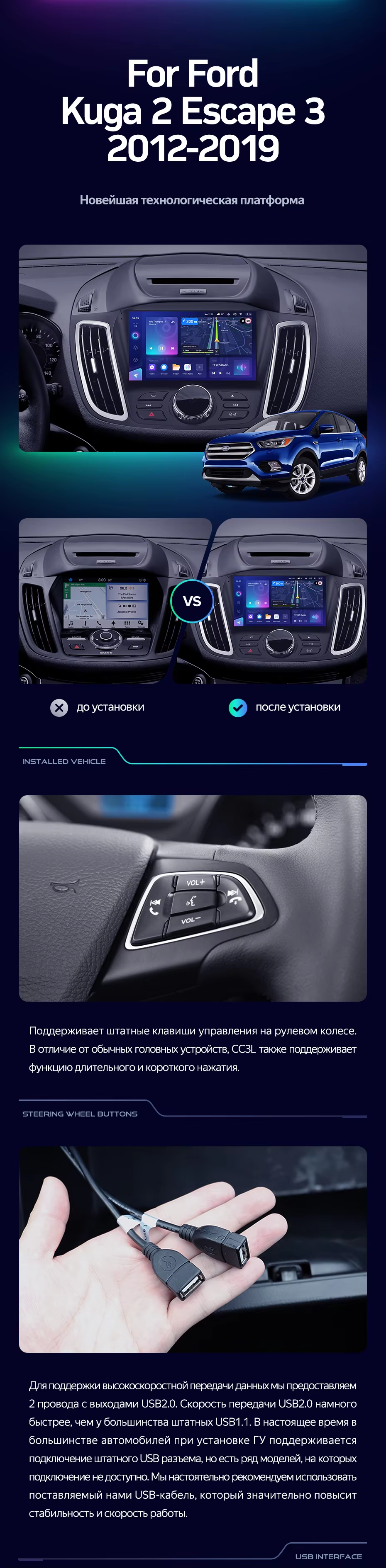 Штатная магнитола Teyes CC3L 4/64 Ford Kuga 2 (2012-2019) Тип-B - купить всего за 34 300 руб. в интернет-магазине в Краснодаре Teyes.com.ru. ✓ Самый лучший выбор мультимедиа ✓ Лучшая замена штатному ГУ ✓ Тел. +7 (800) 775-31-74