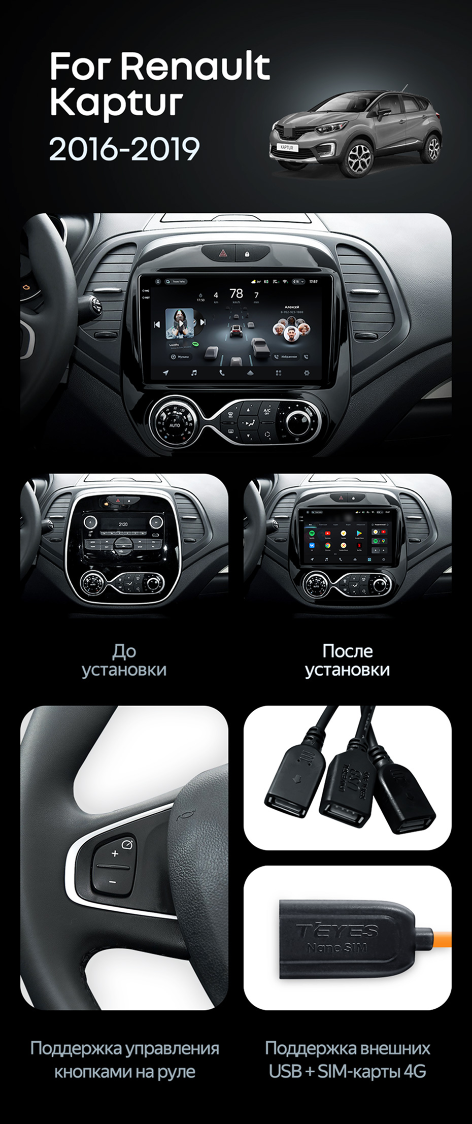 Штатная магнитола Teyes CC4 8/128 Renault Kaptur (2016-2019) F1 - купить всего за 55 250 руб. в интернет-магазине в Краснодаре Teyes.com.ru. ✓ Самый лучший выбор мультимедиа ✓ Лучшая замена штатному ГУ ✓ Тел. +7 (800) 775-31-74