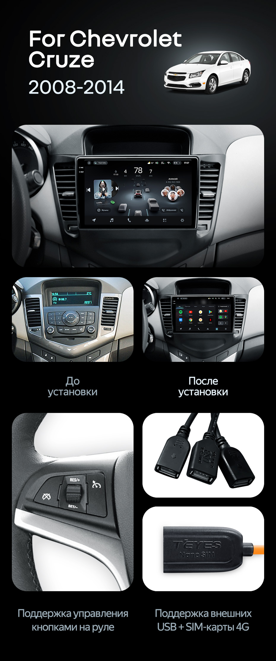 Штатная магнитола Teyes CC4 Pro 12/256 Chevrolet Cruze J300 (2008-2014) - купить всего за 68 710 руб. в интернет-магазине в Краснодаре Teyes.com.ru. ✓ Самый лучший выбор мультимедиа ✓ Лучшая замена штатному ГУ ✓ Тел. +7 (800) 775-31-74