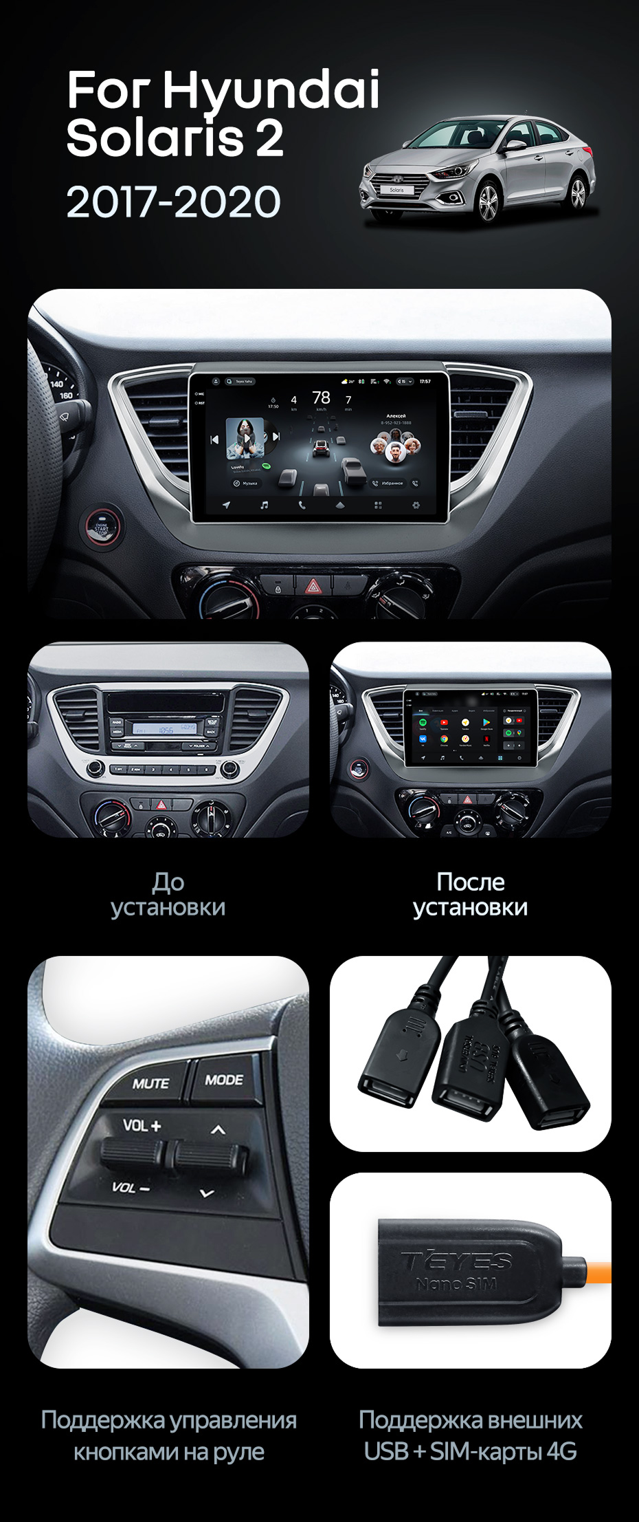 Штатная магнитола Teyes CC4 Pro 12/256 Hyundai Solaris 2 (2017-2020) F1 Тип-A - купить всего за 65 940 руб. в интернет-магазине в Краснодаре Teyes.com.ru. ✓ Самый лучший выбор мультимедиа ✓ Лучшая замена штатному ГУ ✓ Тел. +7 (800) 775-31-74