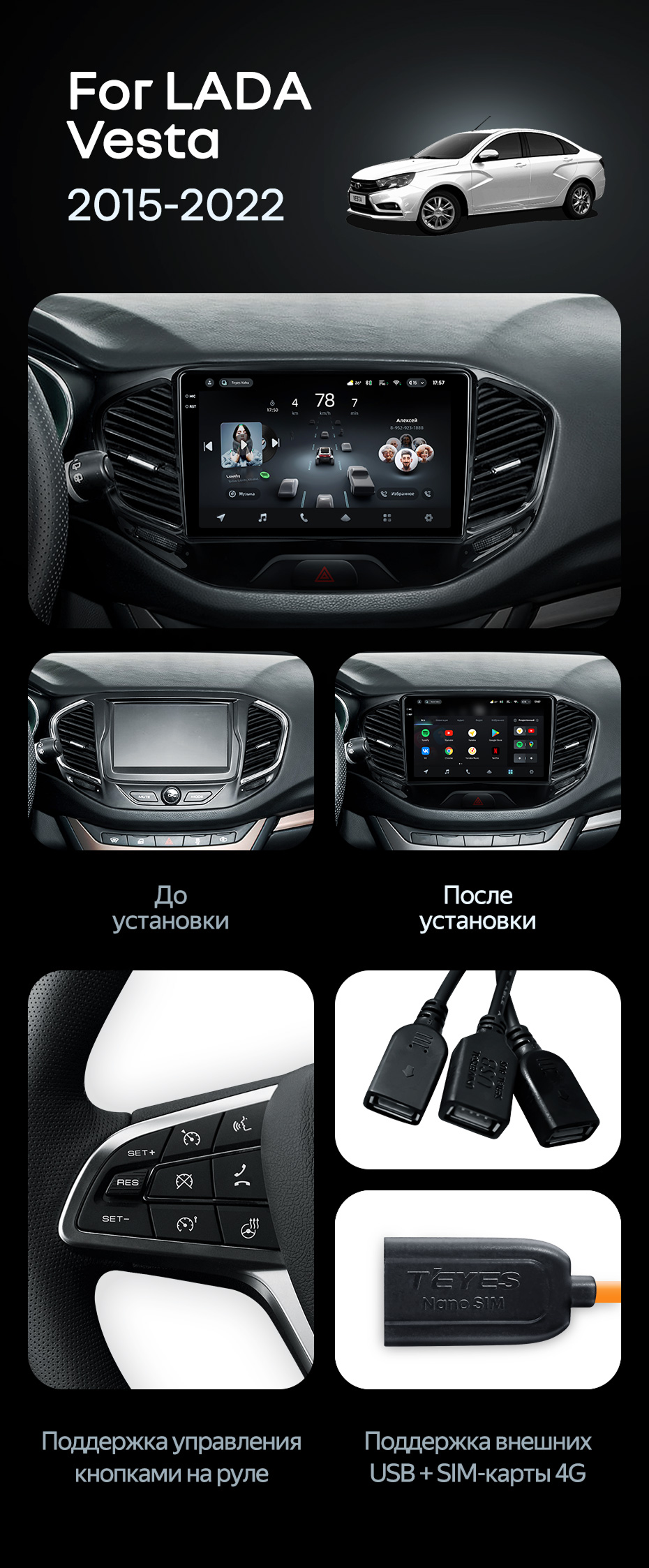 Штатная магнитола Teyes CC4 Pro 12/256 Lada Vesta Cross Sport (2015-2022) F1 - купить всего за 68 480 руб. в интернет-магазине в Краснодаре Teyes.com.ru. ✓ Самый лучший выбор мультимедиа ✓ Лучшая замена штатному ГУ ✓ Тел. +7 (800) 775-31-74