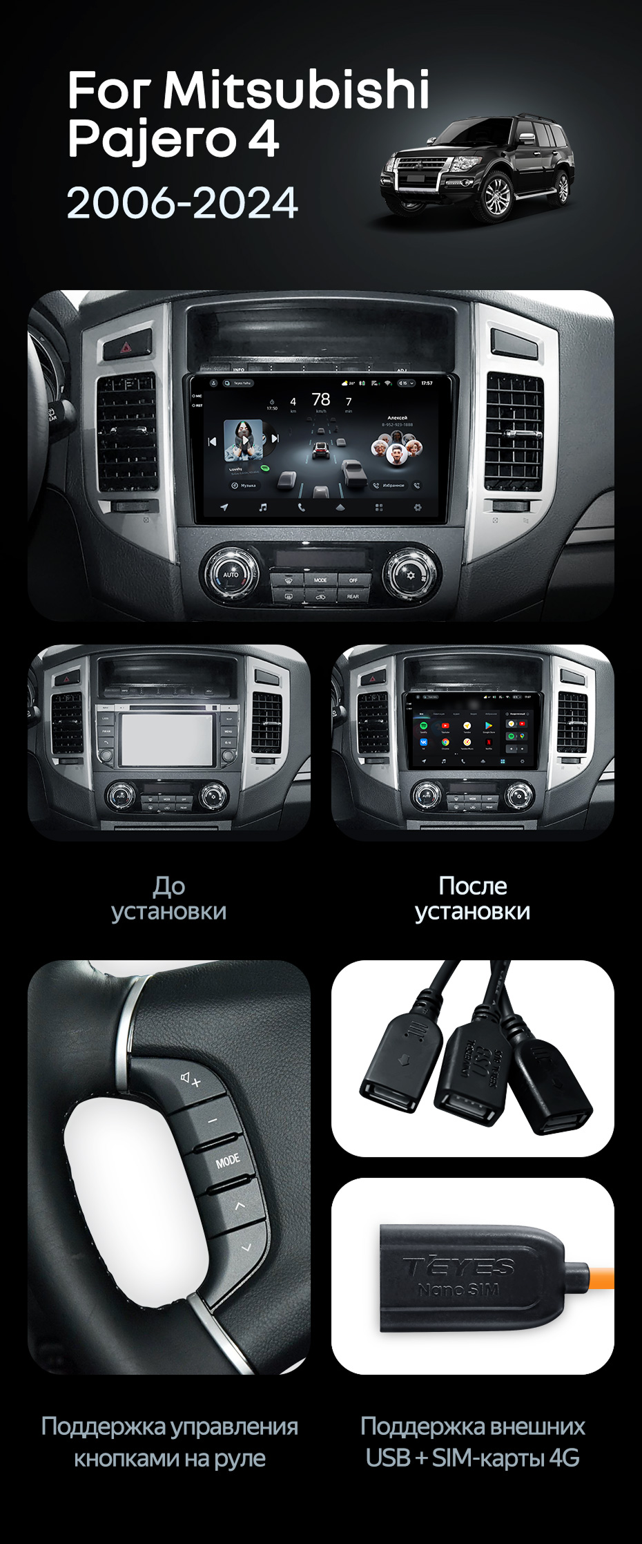 Штатная магнитола Teyes CC4 Pro 12/256 Mitsubishi Pajero 4 V80 V90 (2006-2024) - купить всего за 73 850 руб. в интернет-магазине в Краснодаре Teyes.com.ru. ✓ Самый лучший выбор мультимедиа ✓ Лучшая замена штатному ГУ ✓ Тел. +7 (800) 775-31-74