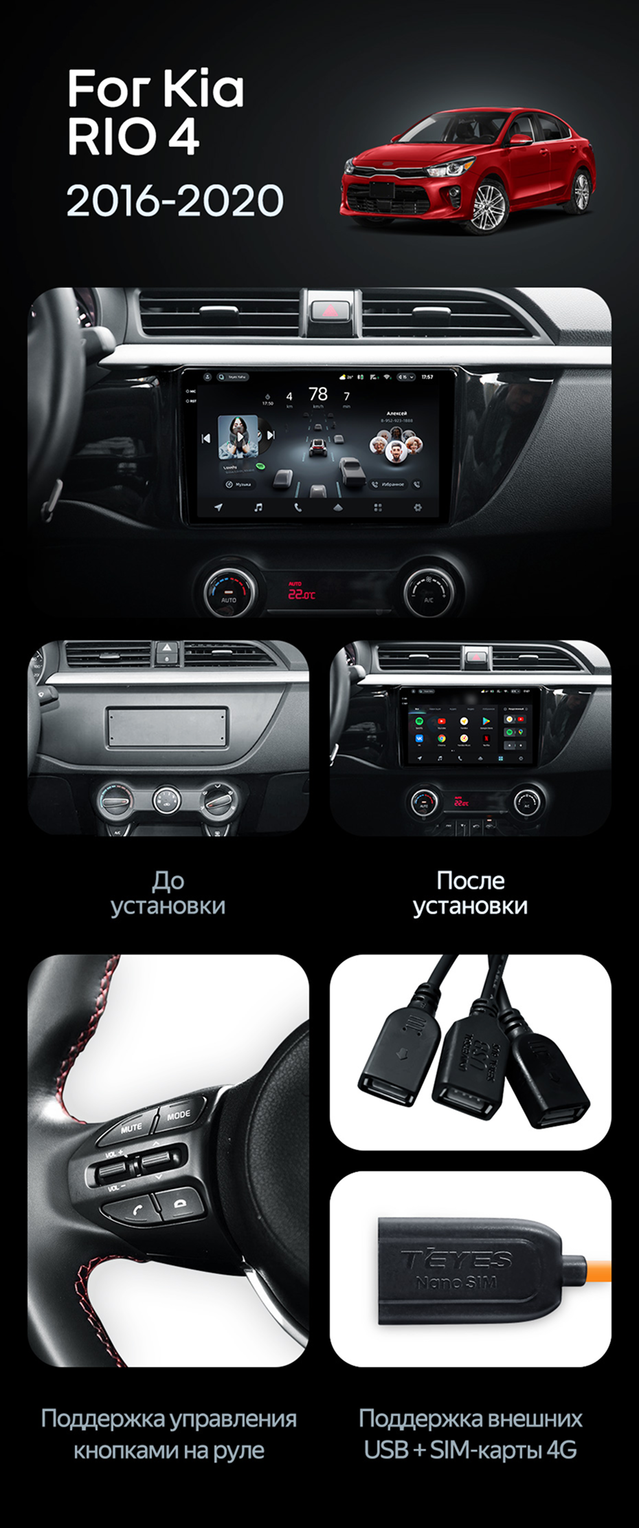 Штатная магнитола Teyes CC4L 6/64 Kia Rio 4 (2016-2020) Тип-A - купить всего за 30 210 руб. в интернет-магазине в Краснодаре Teyes.com.ru. ✓ Самый лучший выбор мультимедиа ✓ Лучшая замена штатному ГУ ✓ Тел. +7 (800) 775-31-74
