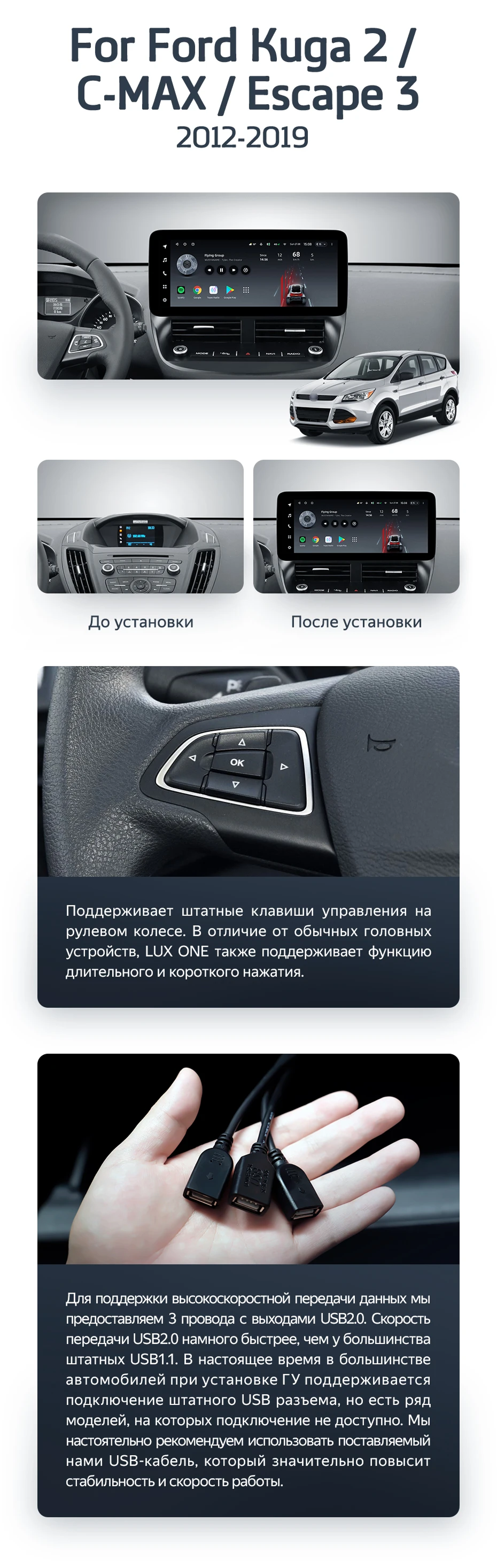 Штатная магнитола Teyes LUX ONE 6/128 Ford Escape 3 (2012-2019) - купить всего за 51 400 руб. в интернет-магазине в Краснодаре Teyes.com.ru. ✓ Самый лучший выбор мультимедиа ✓ Лучшая замена штатному ГУ ✓ Тел. +7 (800) 775-31-74