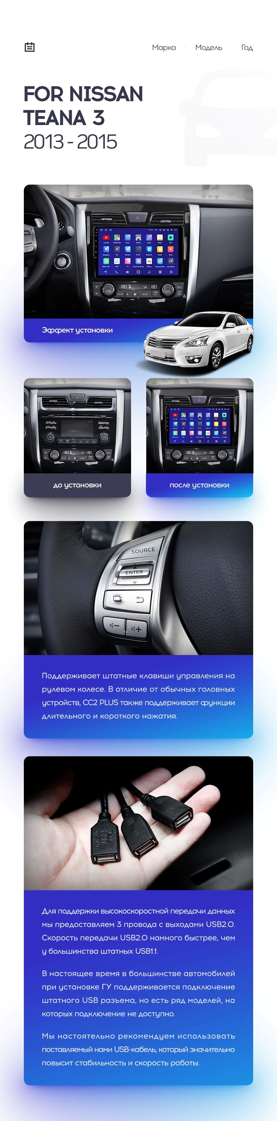 Полный комплект установки магнитолы Teyes с рамкой и проводкой можно выбрать в каталоге штатных магнитол Nissan Teana J33 (2013-2015).