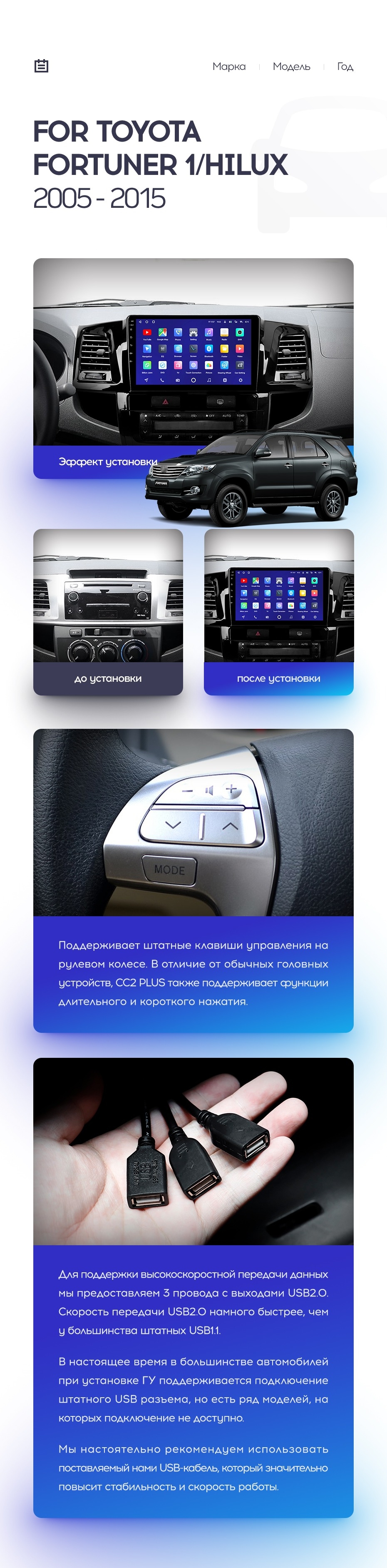 Полный комплект установки магнитолы Teyes с рамкой и проводкой можно выбрать в каталоге штатных магнитол Toyota Fortuner (2008-2014).